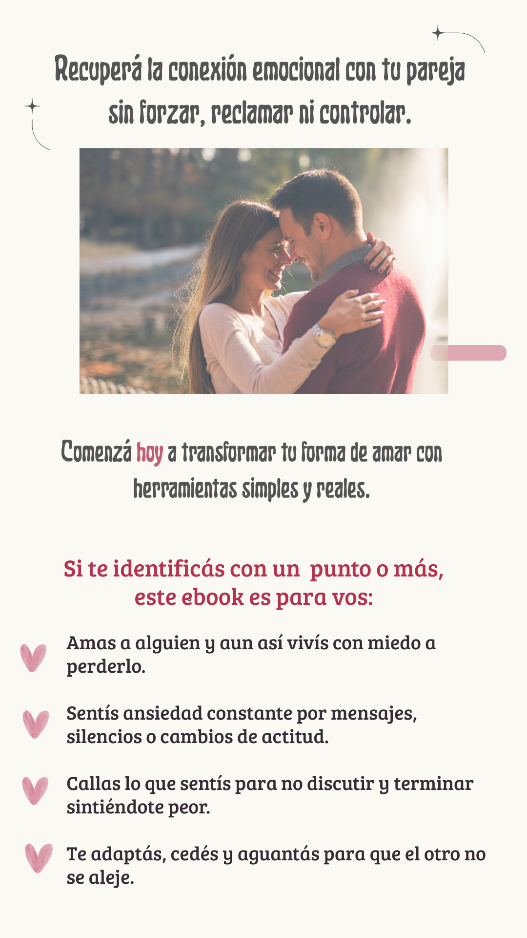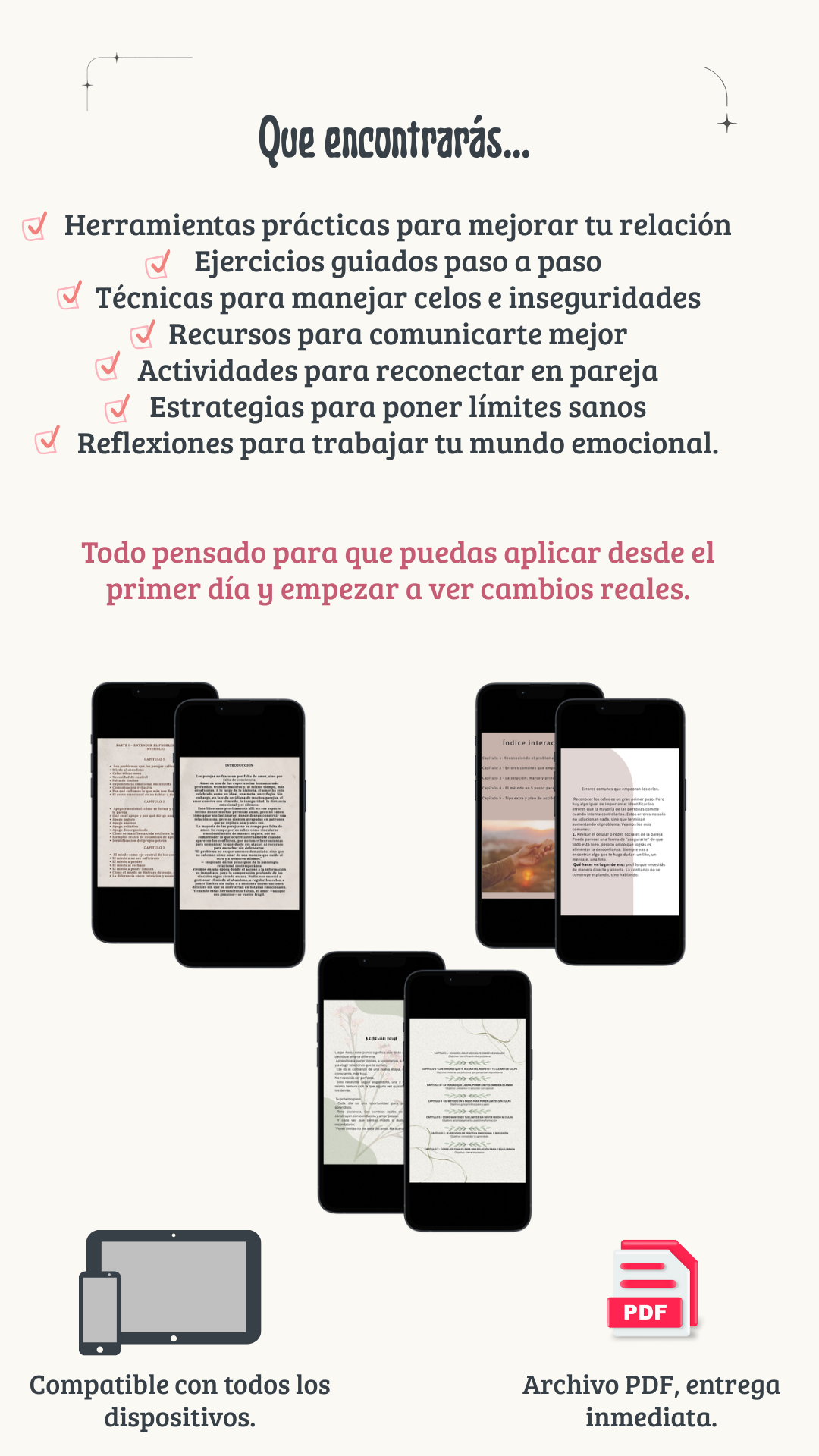 “Lo empecé una noche y al otro día ya noté un cambio: dejé de revisar y de imaginar cosas. Me gustó porque no te juzga, te guía. Las preguntas y ejercicios me ordenaron la cabeza. Hoy discuto menos y me siento más segura. Lo recomiendo si te cansaste de sufrir por celos.”